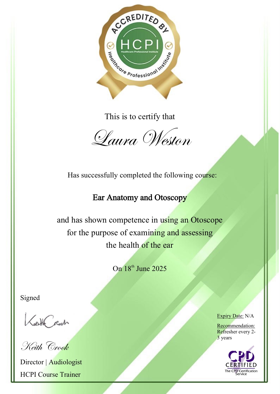 We are covered with Professional Public Liability Insurance, which complements our qualifications, including the Ear Anatomy Certificate, Otoscopy Certificate, and expertise gained from our Earwax Removal Course.
